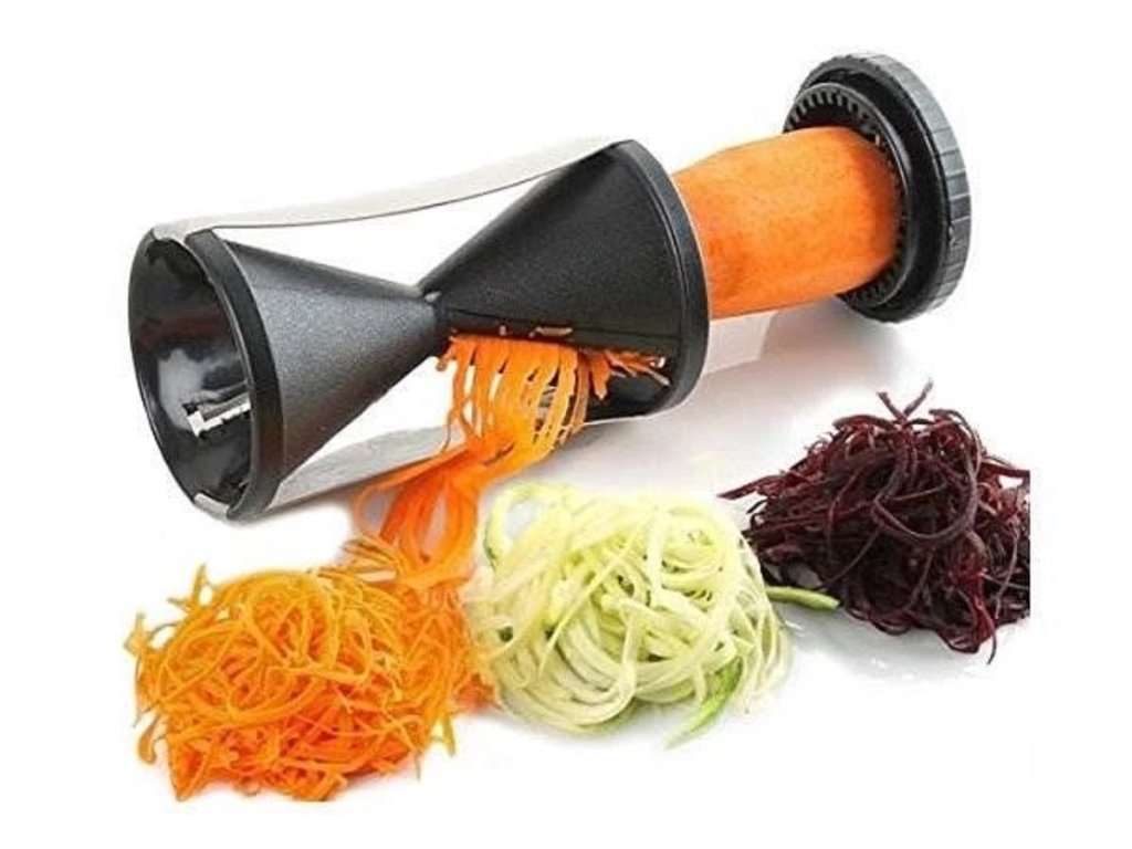 Tento praktický obojstranný špirálový krájač je ideálny na prípravu zdravých a nízkokalorických cuketových alebo mrkvových špagiet. Špirály sú tiež skvelé na prípravu rezancových jedál.